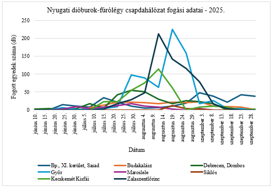 Nyugati dióburok-fúrólégy csapdahálózat fogási adatai