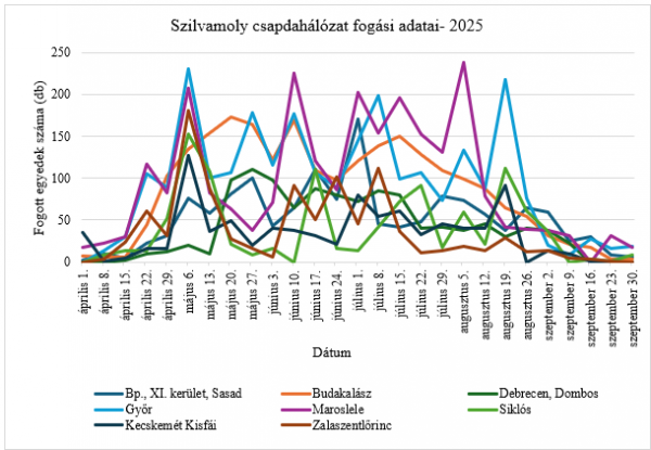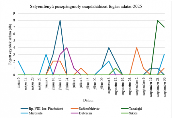 Debrecenben, Kecskeméten és Zalaszentlőrincen nem detektáltak szilvamolyt. A legtöbb egyedet Győrben (19 db) figyelték meg.