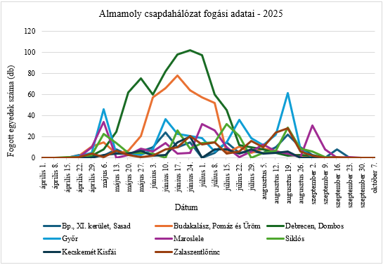 Nyugati dióburok-fúrólégy csapdahálózat fogási adatai
