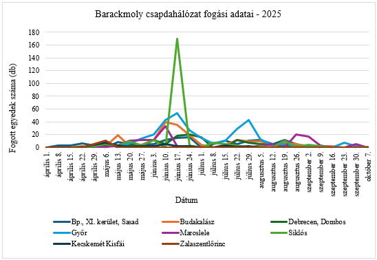 Siklóson, Kecskeméten és Zalaszentlőrincen nem detektáltak szilvamolyt. A legtöbb egyedet Maroslelén (14 db) figyelték meg.